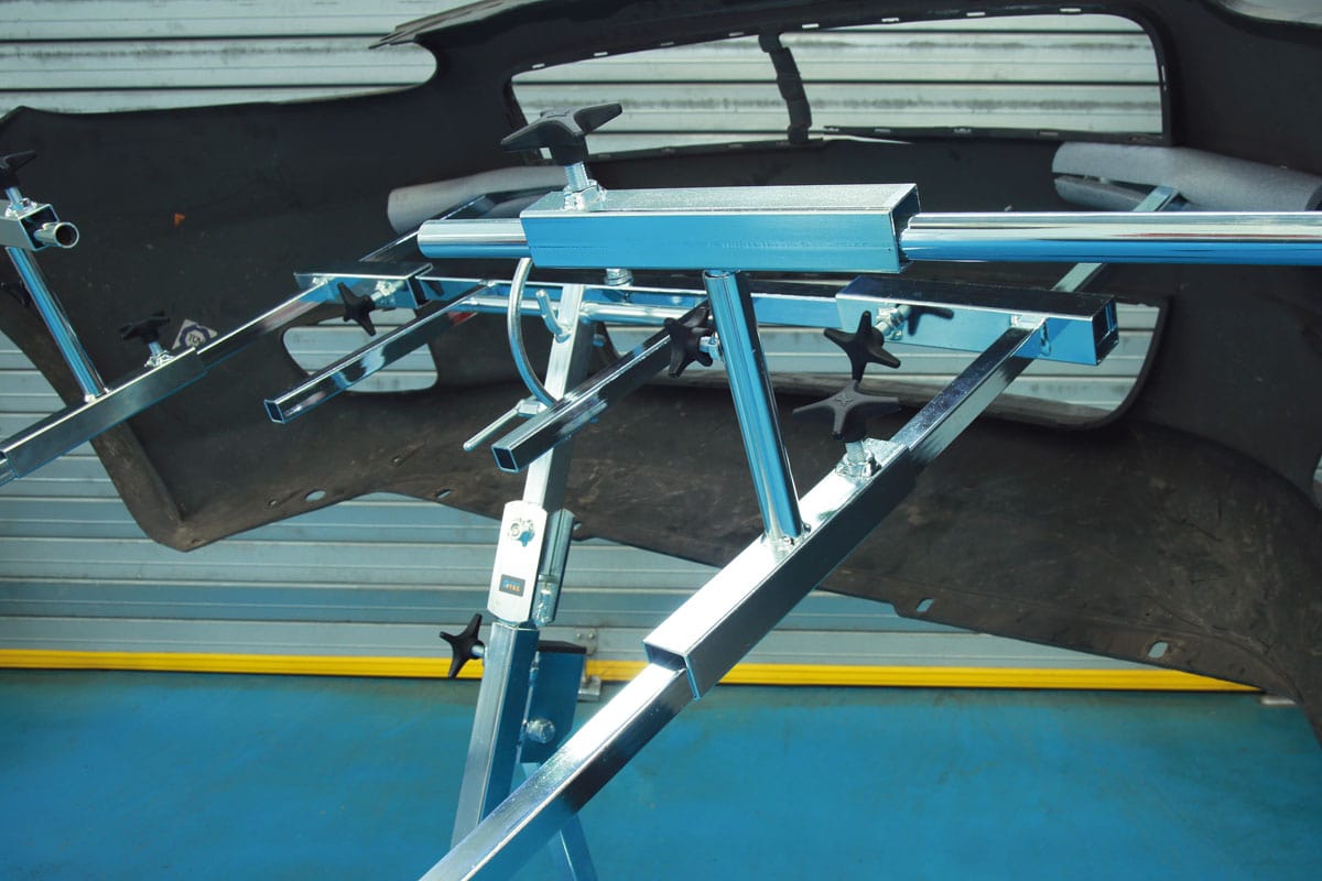 - Adjustable bumper stand, with integral plier grips, rotates & swivels through 90° to allow access during preparation & painting.